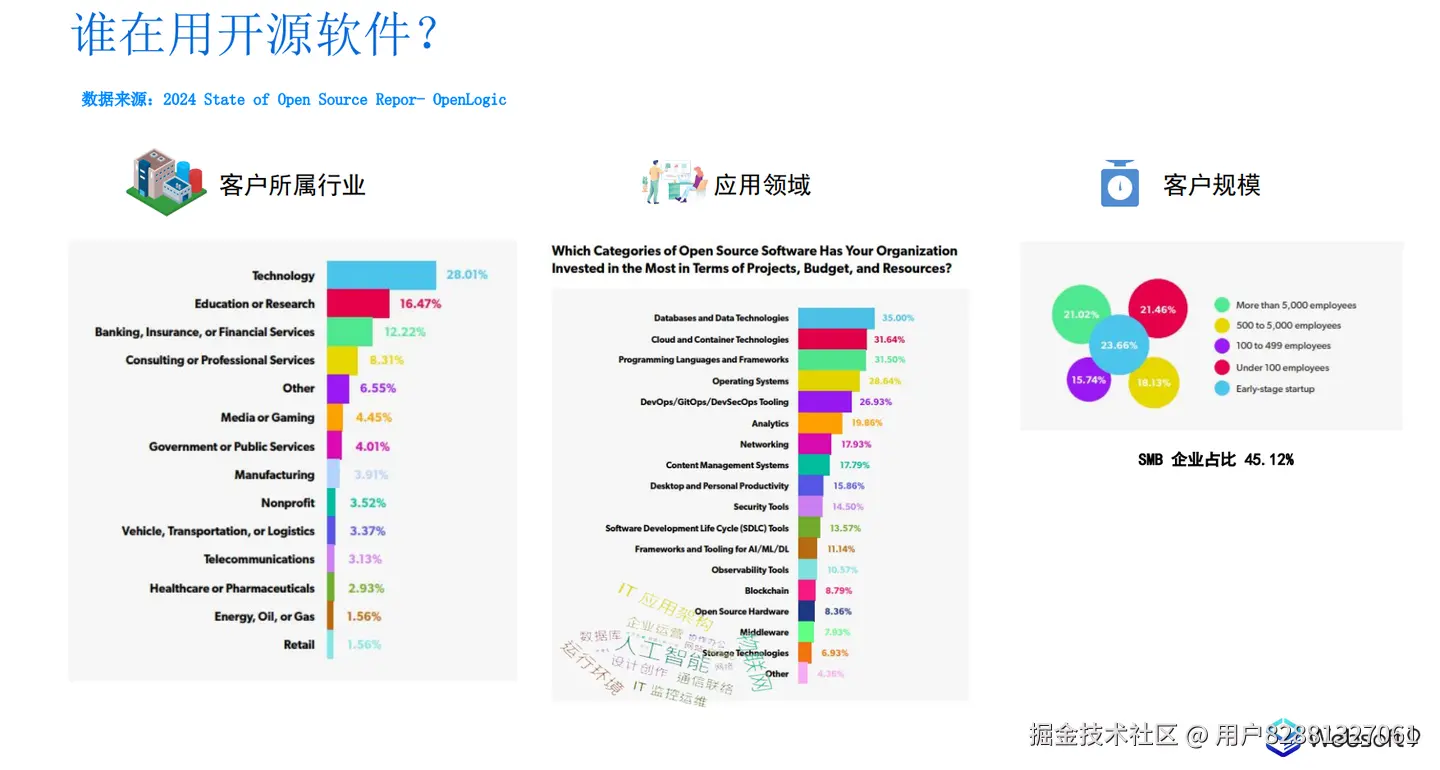 - 降本增效的核心工具 开源软件通过免费或低成本许可模式,降低企业IT预算压力。据《2024开源软件报告》,94.57%的企业已采用开源软件,其中34.07%加大投入,开源软件全球估值达8.8万亿美元。