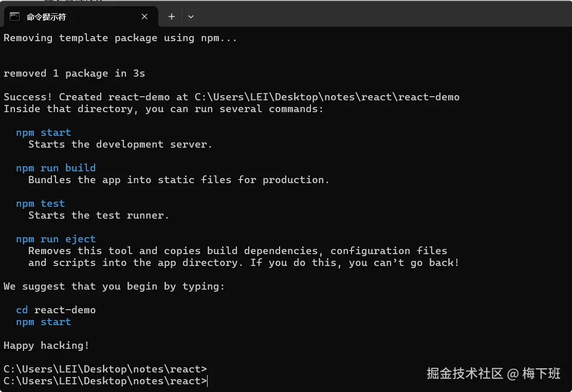 输入以下命令来创建一个新的React项目,其中react-demo替换为你想要的项目名称: