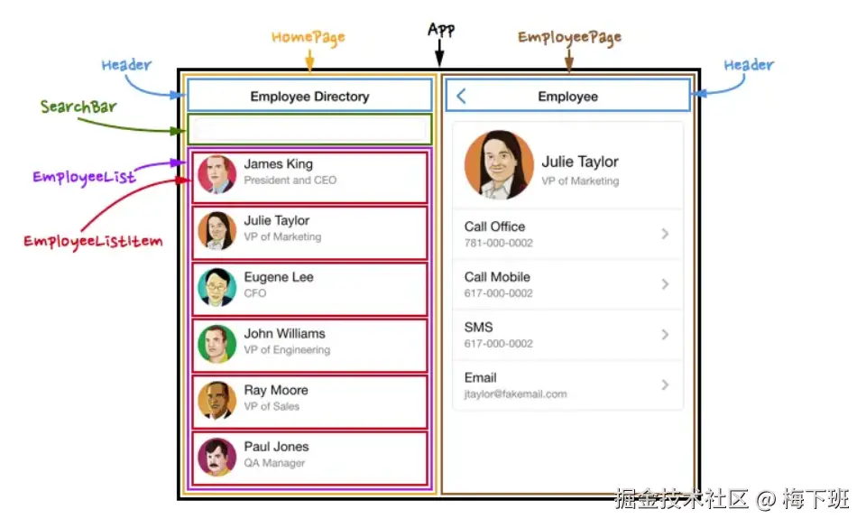 - React Native:React 的理念还延伸到了原生移动应用开发,React Native 允许使用相同的开发模式来构建原生移动应用,实现了跨平台开发能力。