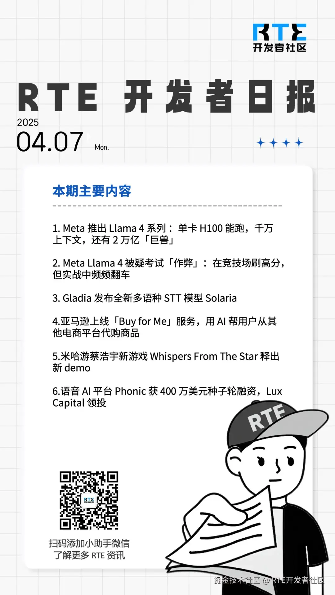 这里是 「RTE 开发者日报」 ,每天和大家一起看新闻、聊八卦。我们的社区编辑团队会整理分享 RTE(Real-Time Engagement) 领域内「有话题的 技术 」、「有亮点的 产品 」、「有思考的 文章 」、「有态度的 观点 」、「有看点的 活动 」,但内容仅代表编辑的个人观点,欢迎大家留言、跟帖、讨论。