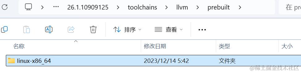 TOOLCHAIN: 指定 LLVM 工具链路径,根据系统编译环境系统架构选择 linux-x86_64。我们可以进入 NDK 对应的文件夹中,看到它: