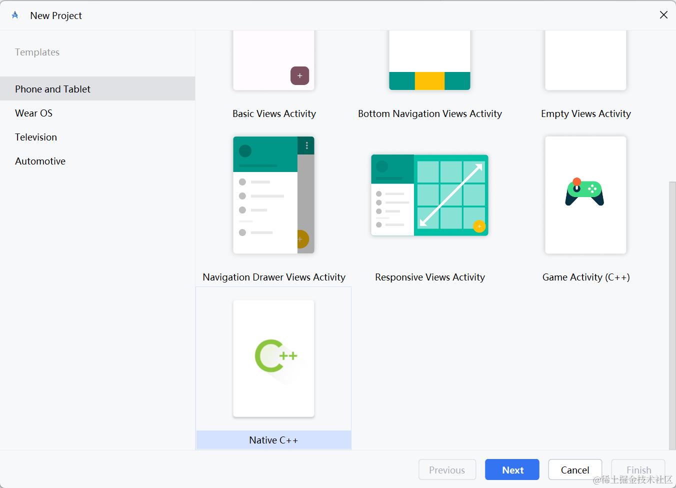 接下来,创建一个 Native C++ 的 Android 项目,验证编译的结果是否正确。