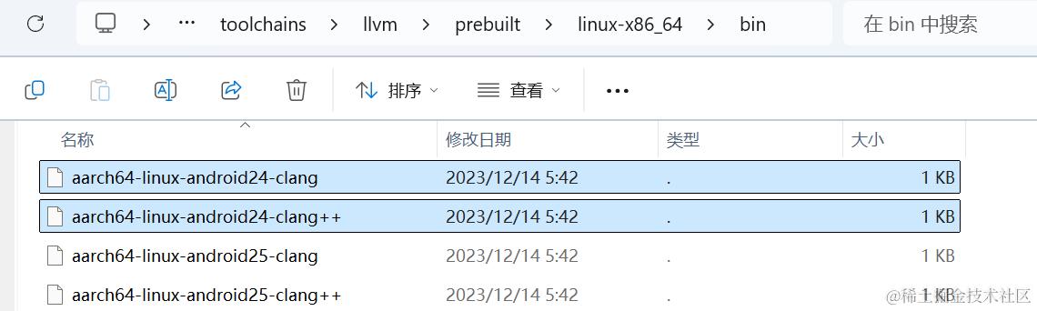 CC 与 CXX: 分别为 C 和 C++ 编译器,后缀 ${API_LEVEL}-clang 是 LLVM 编译器要求的命名格式。这里对应的是这两个文件: