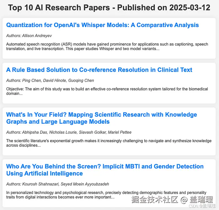 - 建立分层团队:可以建立一个分层团队,其中不同角色负责搜索不同的 ArXiv 发表类别。