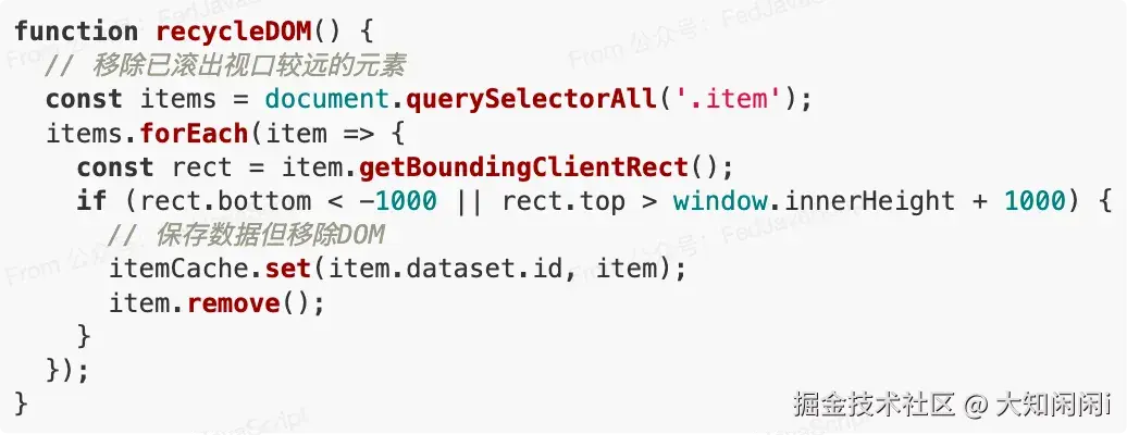这种技术被称为"DOM回收",确保DOM树的大小保持在可控范围内。