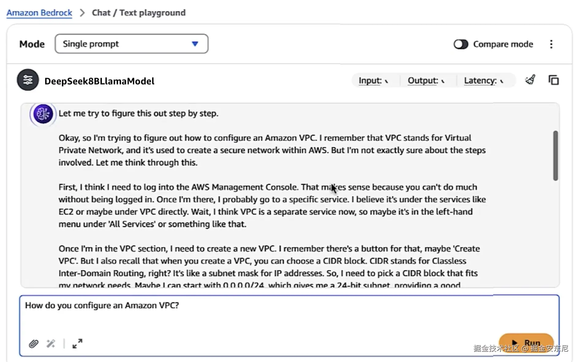 📢 感兴趣的朋友可以直接上亚马逊云科技控制台搜 DeepSeek 体验一下,有 Playground 还能调 prompt,别错过这波窗口!—— 点击立即体验