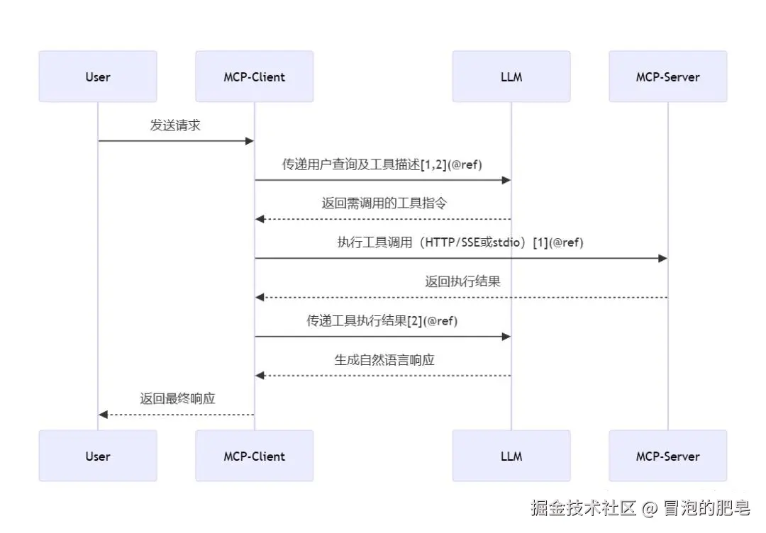 - 因为MCP是客户本地的服务,需要给本地服务传递调用指令,还需要的到MCP-SERVER的执行结果(一句话链路回合多了)。