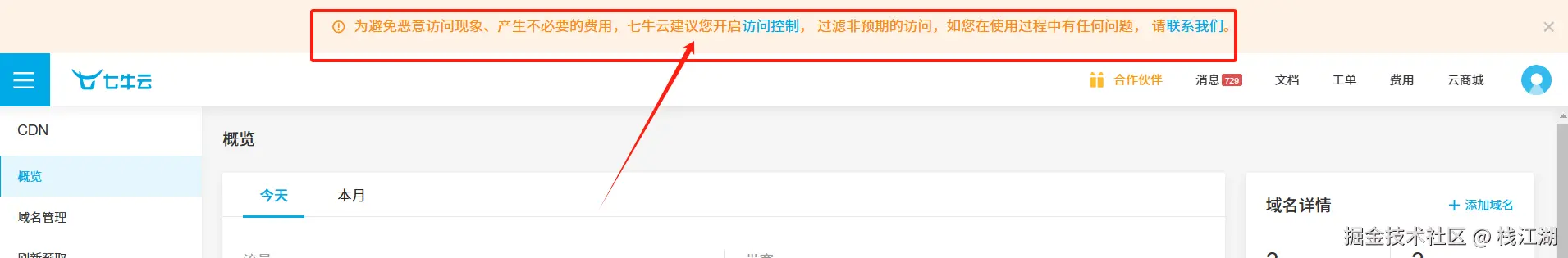 当然经过控制已经掉下去了,这里来主要来看看控制的方法。当然七牛云官网也有相应的提醒让大家开启“访问控制”。