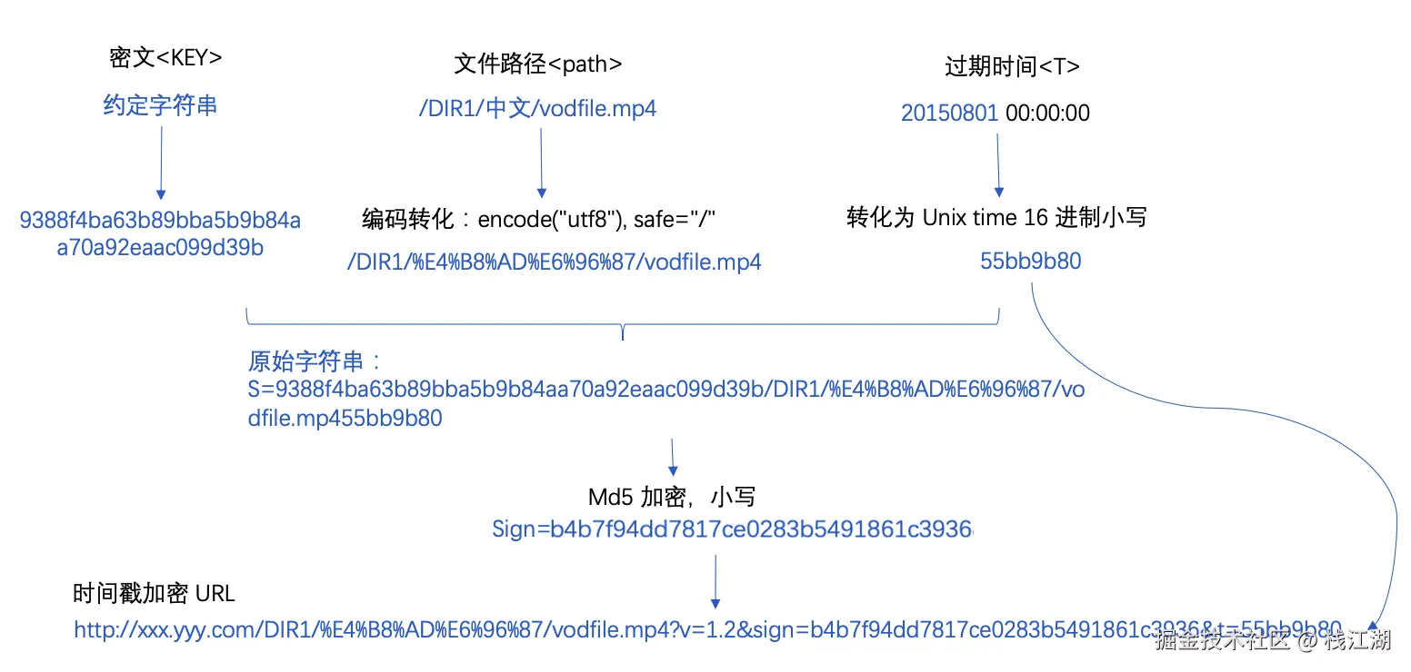 时间戳防盗链可以通过对时间有关的字符串进行签名,将时间、签名信息通过一定的方式传递给 CDN 边缘节点服务器进行鉴权,从而正确响应合法请求、拒绝非法请求。相比于 referer 防盗链,时间戳防盗链的安全性更强。