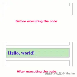 这段代码创建了一个新的段落(与当前处于相同深度层级的容器),内容为 “Hello, world!” 。