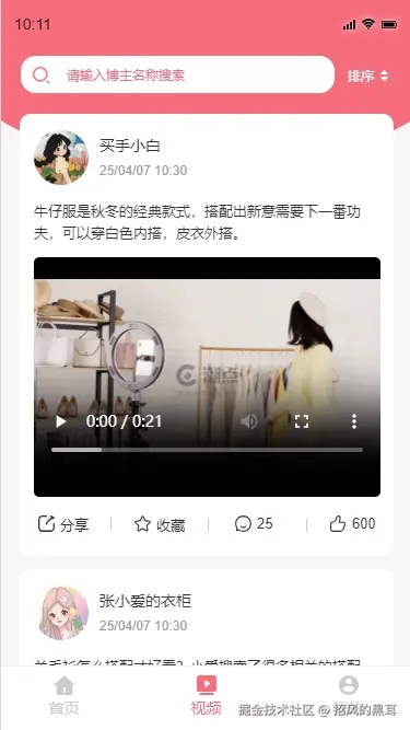 - 设计思路:展示品牌商和用户发布的分享商品视频及介绍内容,提供查看视频、点赞、收藏、评论分享等功能,增强用户之间的互动。