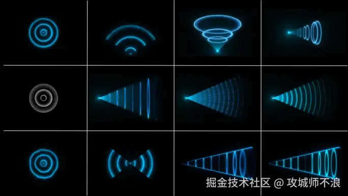 这些场景都需要直观地表达出从一个点发射出去,覆盖一定范围的概念,而雷达发射波效果恰好满足这一需求。