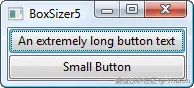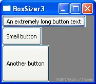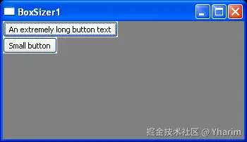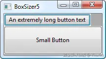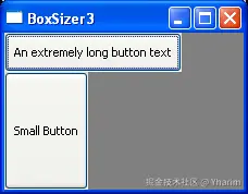你可以看到,第一个按钮采用了其最小尺寸,而第二个按钮进行了扩展以与之匹配。这对控件的影响方式与第二个参数的作用相反;在垂直布局管理器中,wx.EXPAND会导致控件在水平方向上扩展,而在水平布局管理器中,它会导致控件在垂直方向上扩展。