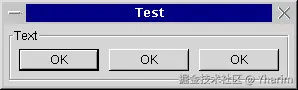 作为一个示例,我们将构建一个对话框,该对话框顶部有一个文本字段,底部有两个按钮。这可以看作是一个顶层的列布局,文本在顶部,按钮在底部;同时还有一个底层的行布局,其中“确定”按钮在左边,“取消”按钮在右边。在许多情况下(尤其是在Unix系统下的对话框和普通框架中),主窗口是用户可以调整大小的,并且这种大小的变化必须传递给它的子控件。在我们的例子中,我们希望文本区域能随着对话框一起变大,而按钮的大小应保持固定。此外,所有控件周围要有一圈细边框,以使对话框看起来美观——更麻烦的是,随着对话框宽度的变化,按钮应保持居中显示。