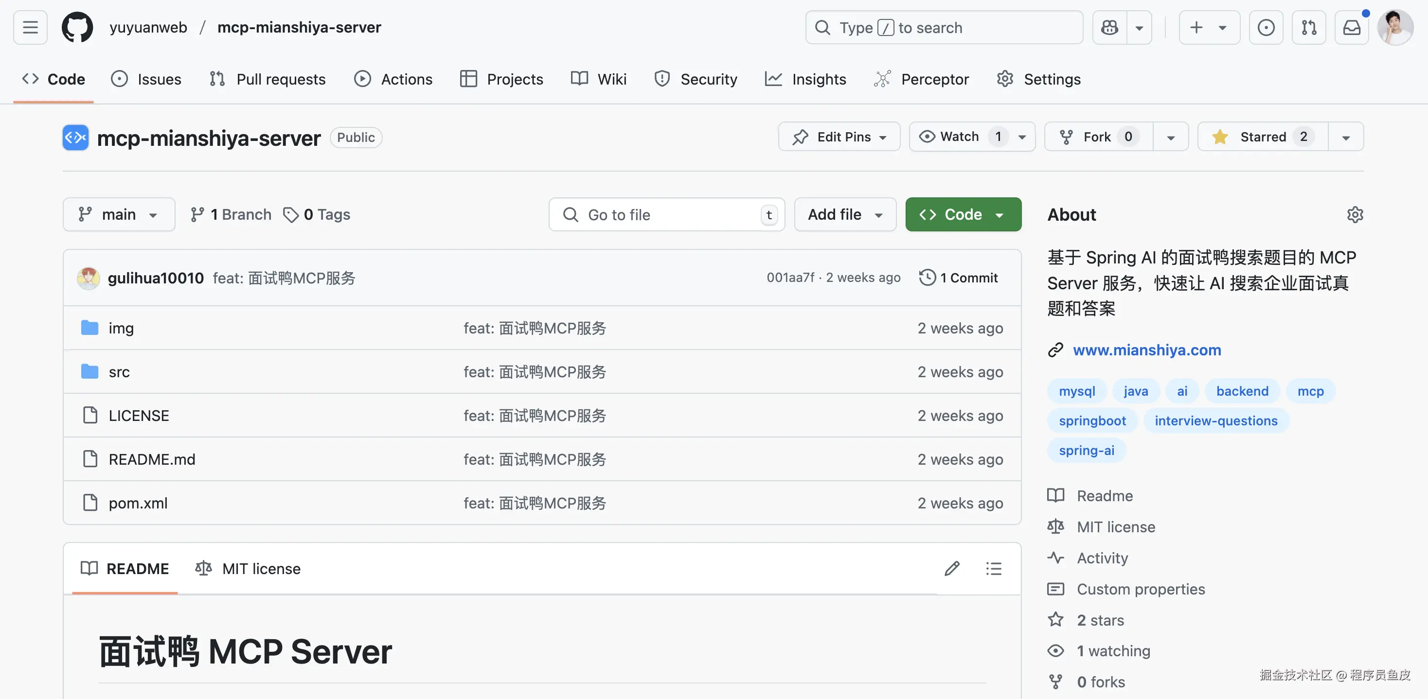 首先下载我们 开源的面试鸭 MCP 服务 代码到本地: