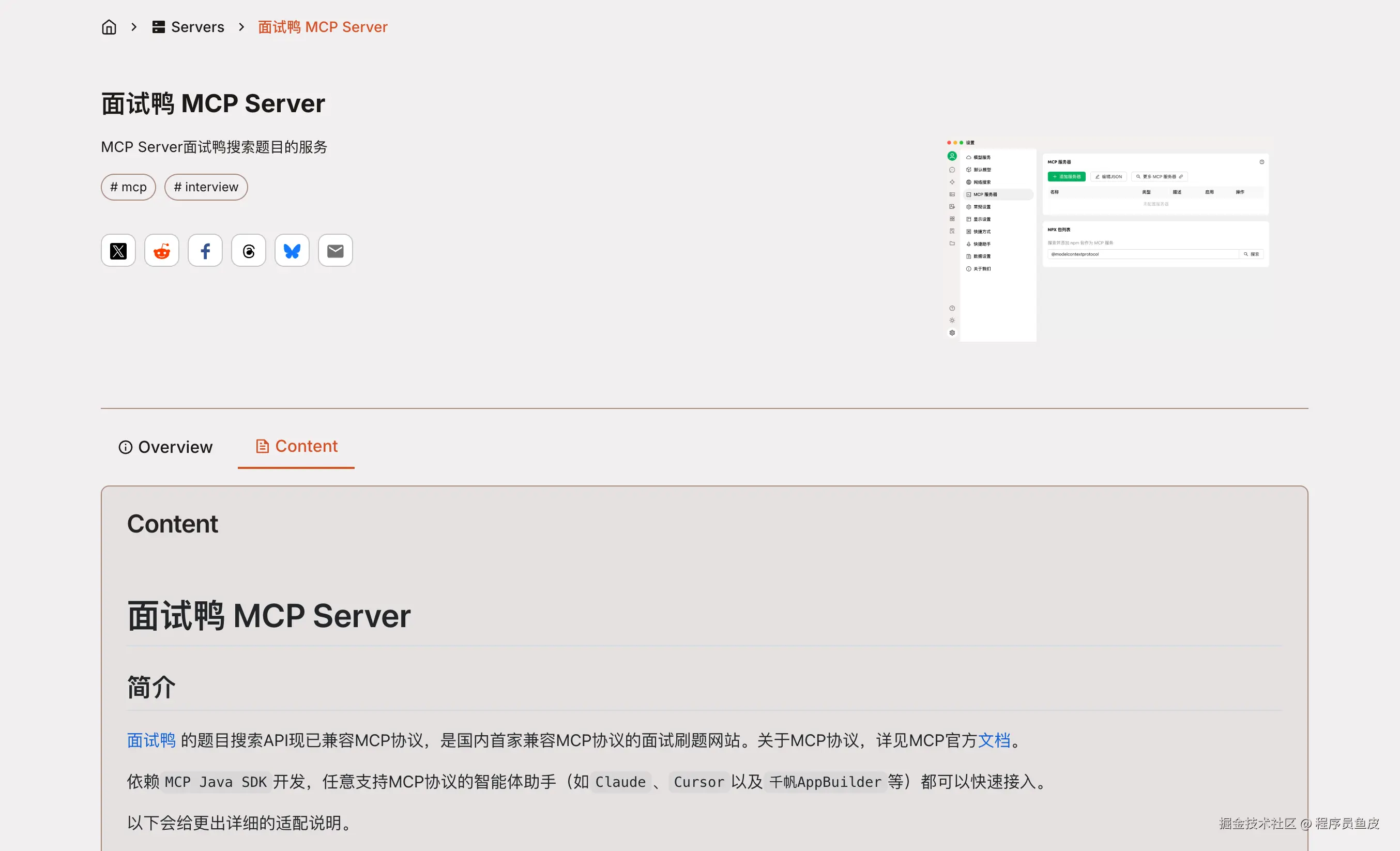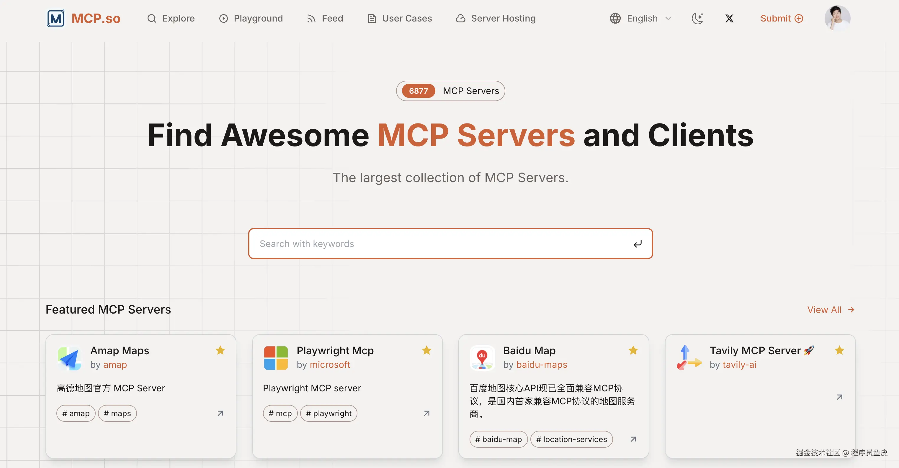 和开发一个 APP 一样,我们也可以把做好的 MCP 服务分享到第三方 MCP 服务平台。比如 MCP.so,可以理解为 MCP 服务的应用市场。