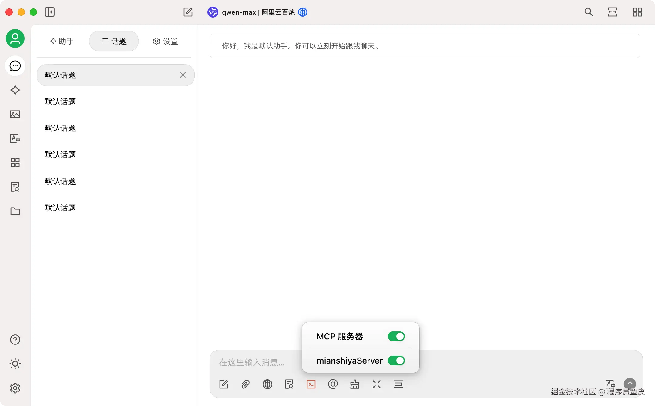4、进入聊天页面,在输入框下面勾选开启 MCP 服务: