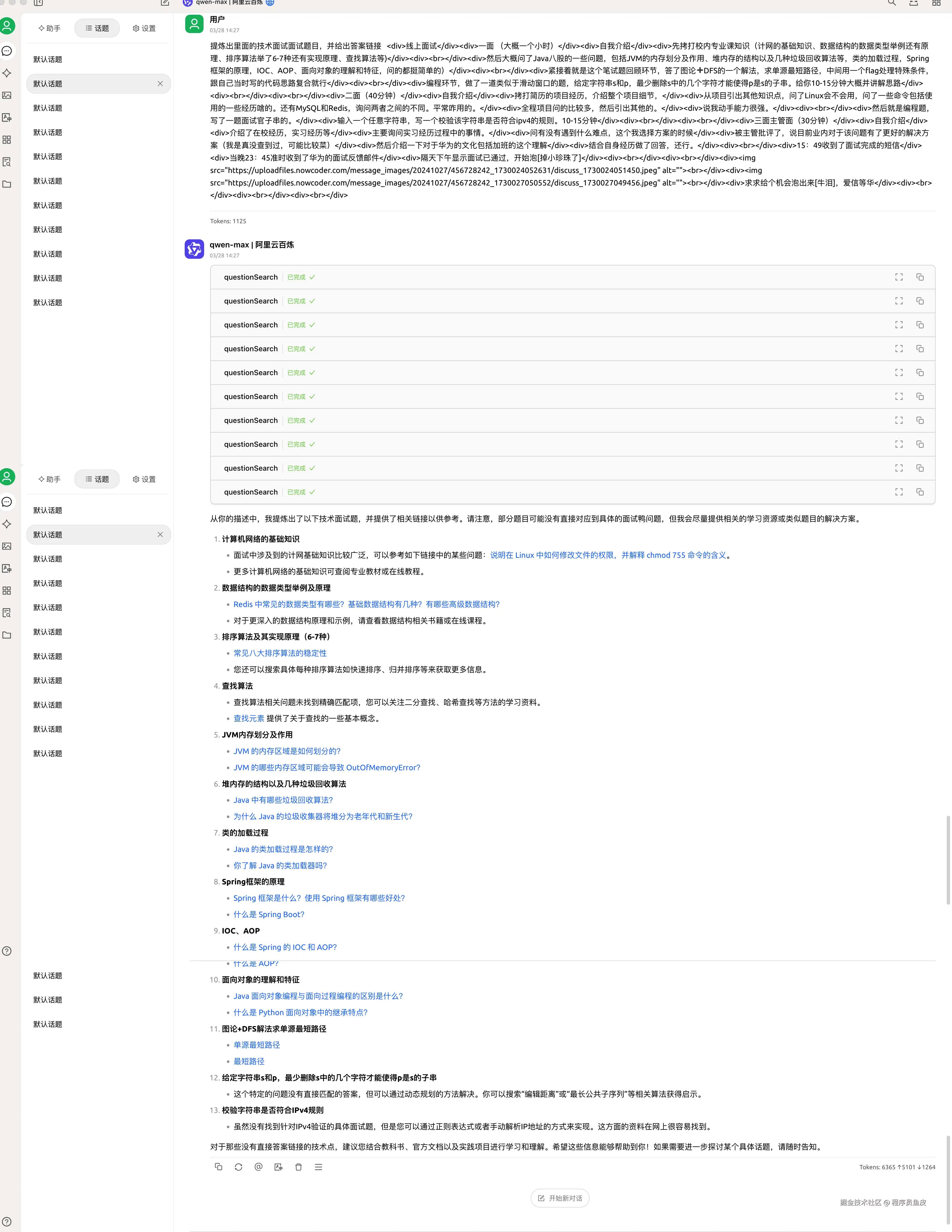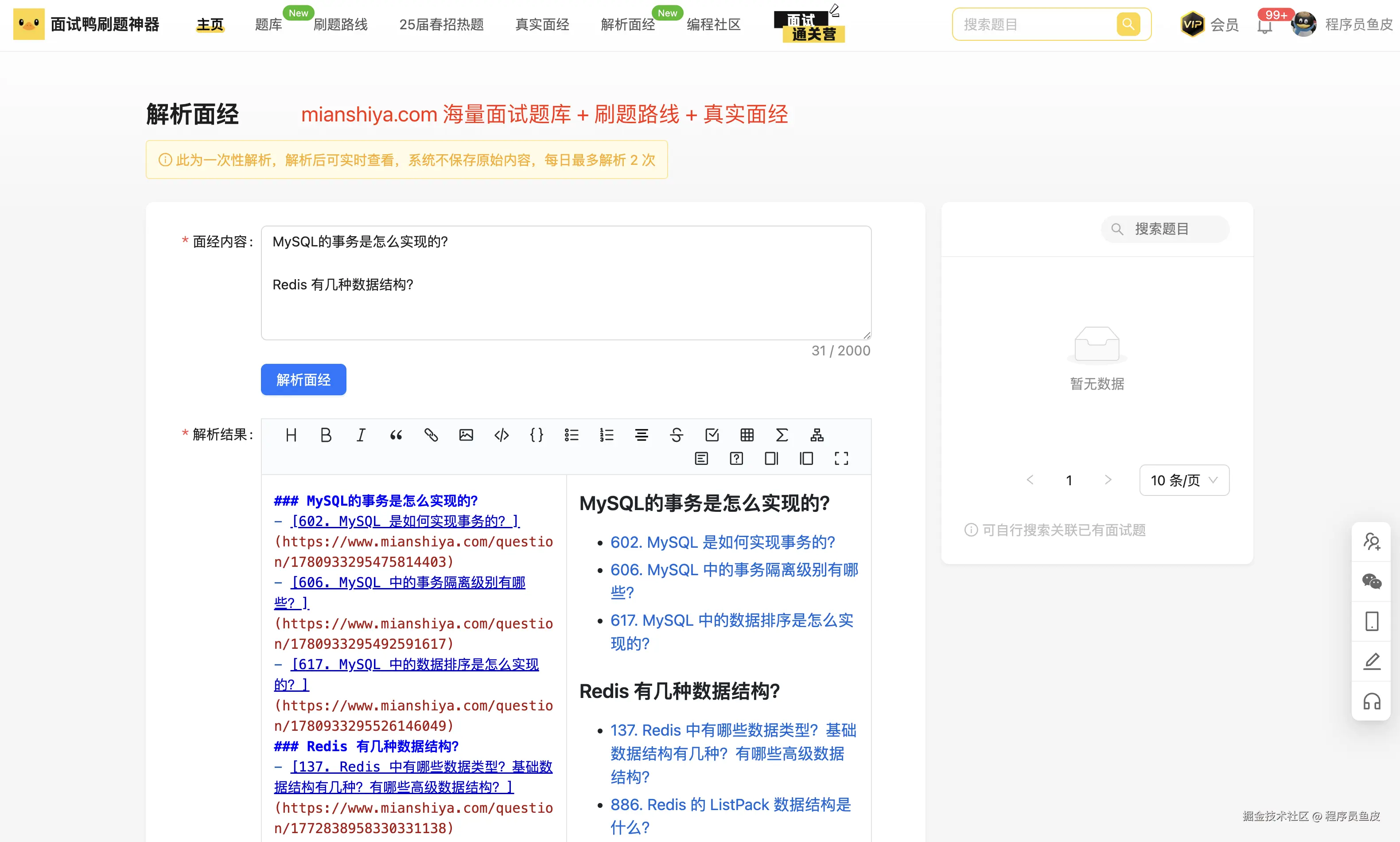 甚至还进行面经解析,返回多个面试题目与答案的链接!