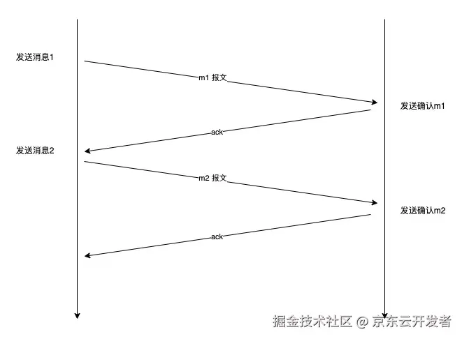 描述:没传送一个报文,服务端都回复一个确认消息,效率低下。