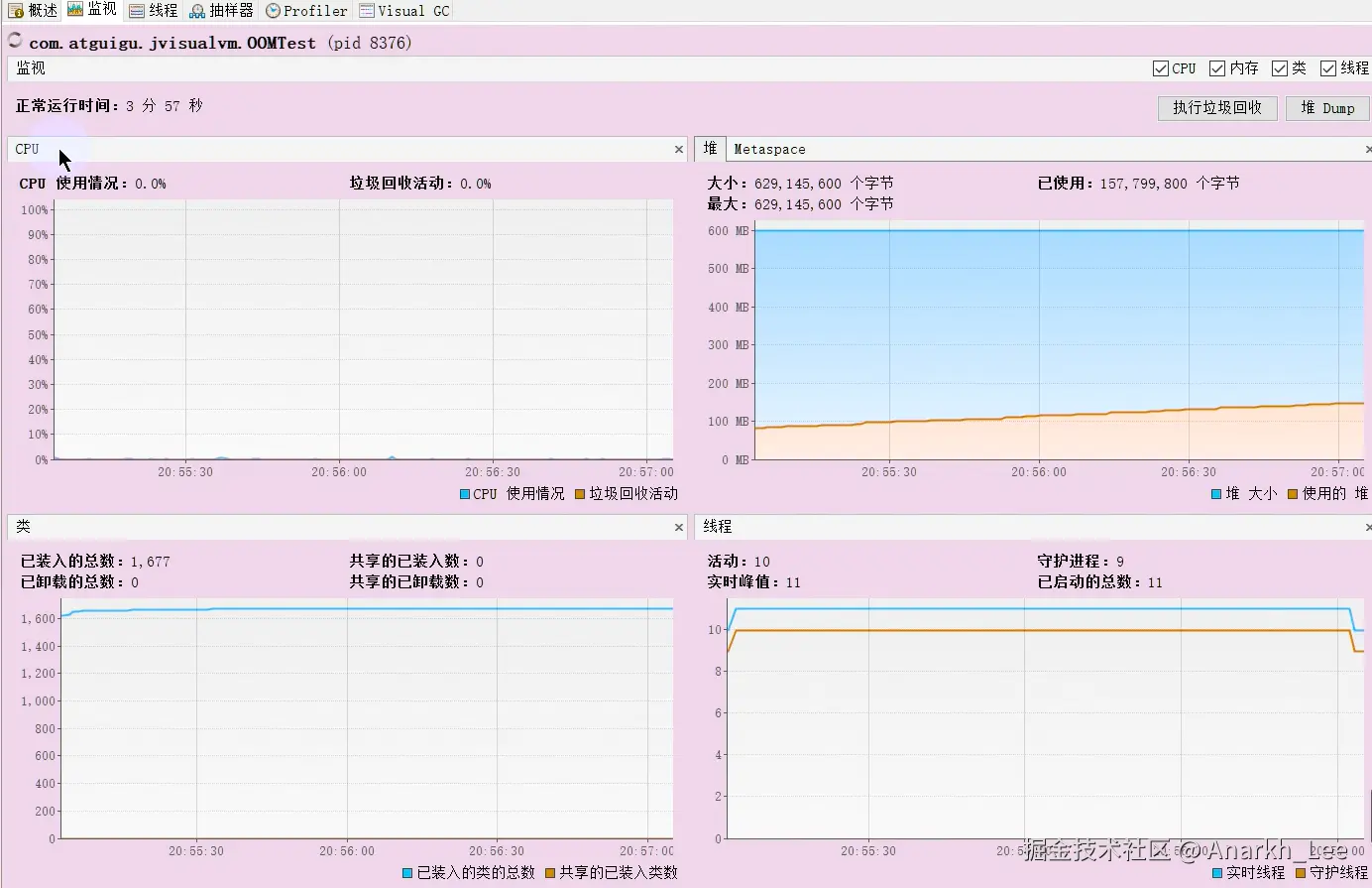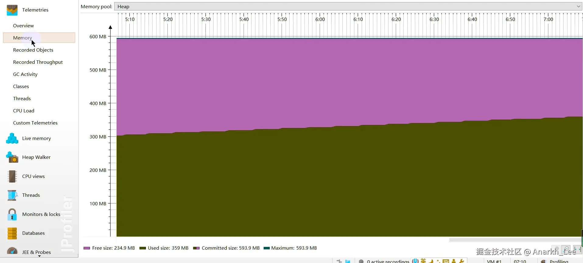Live memory 内存剖析:class/class instance的相关信息。例如对象的个数,大小,对象创建的方法执行栈,对象创建的热点。