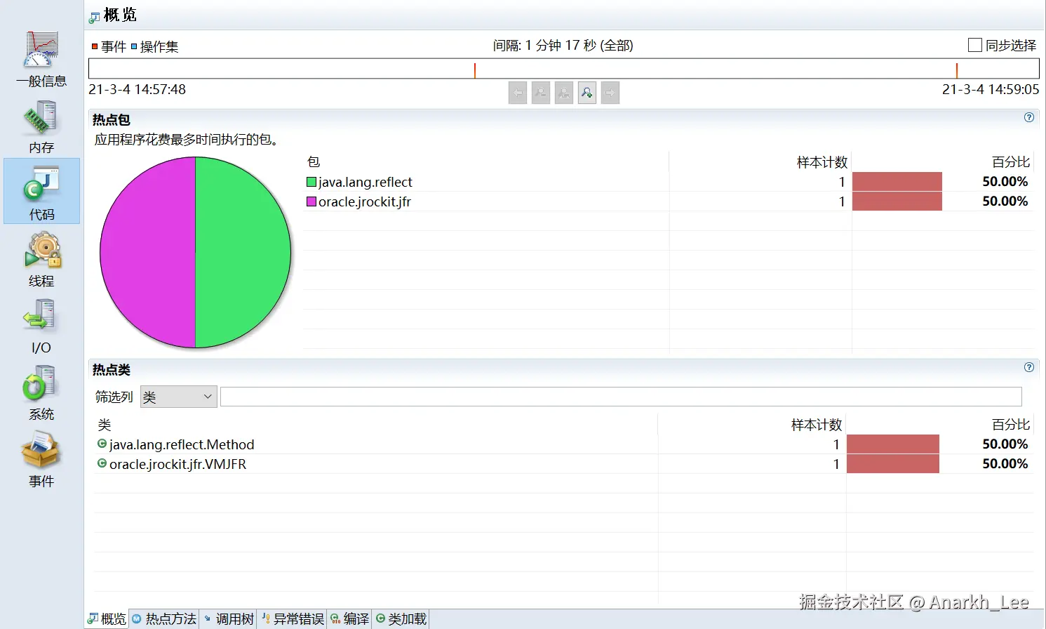 JMC的另一个优点就是:采用取样,而不是传统的代码植入技术,对应用性能的影响非常非常小,完全可以开着JMC来做压测(唯一影响可能是 full gc 多了)。