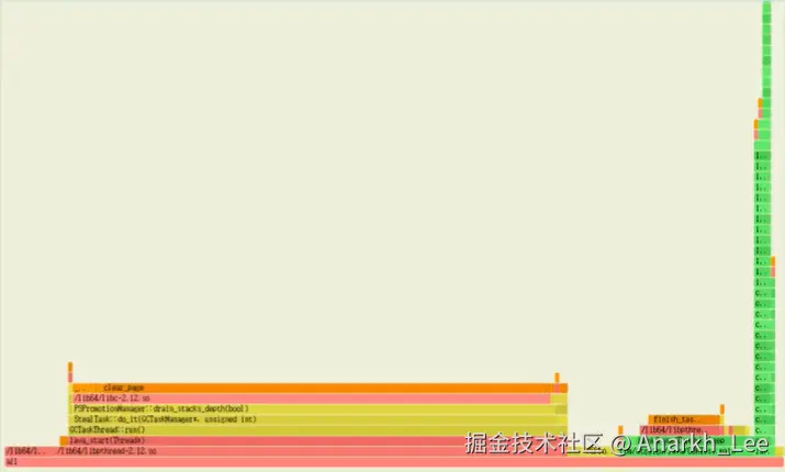 火焰图,简单通过x轴横条宽度来度量时间指标,y轴代表线程栈的层次。