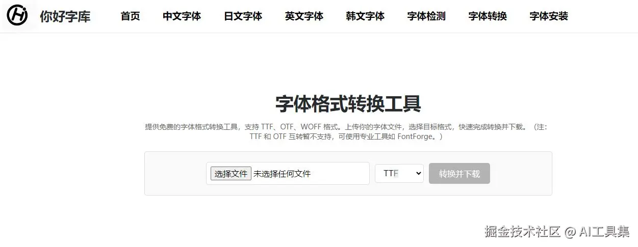 在数字化设计和开发中,字体格式不兼容是效率杀手。不同平台(网页、设计软件、移动端)对字体格式的要求不同,手动转换不仅耗时,还可能导致字体文件损坏或授权丢失。今天推荐一个零门槛免费工具——你好字库字体格式转换工具(zi.hi.cn/font-conver…),帮你 30 秒搞定 TTF/OTF/WOFF 格式互转,开发者专属的效率神器来了!