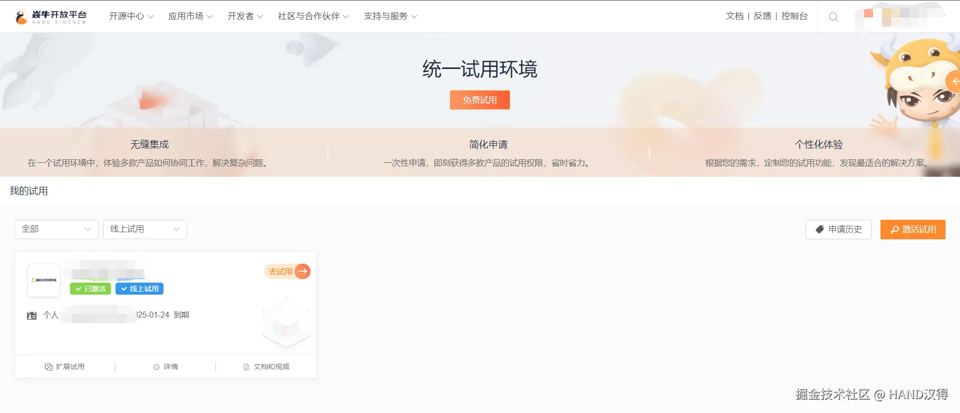 1. 访问 汉得焱牛开放平台