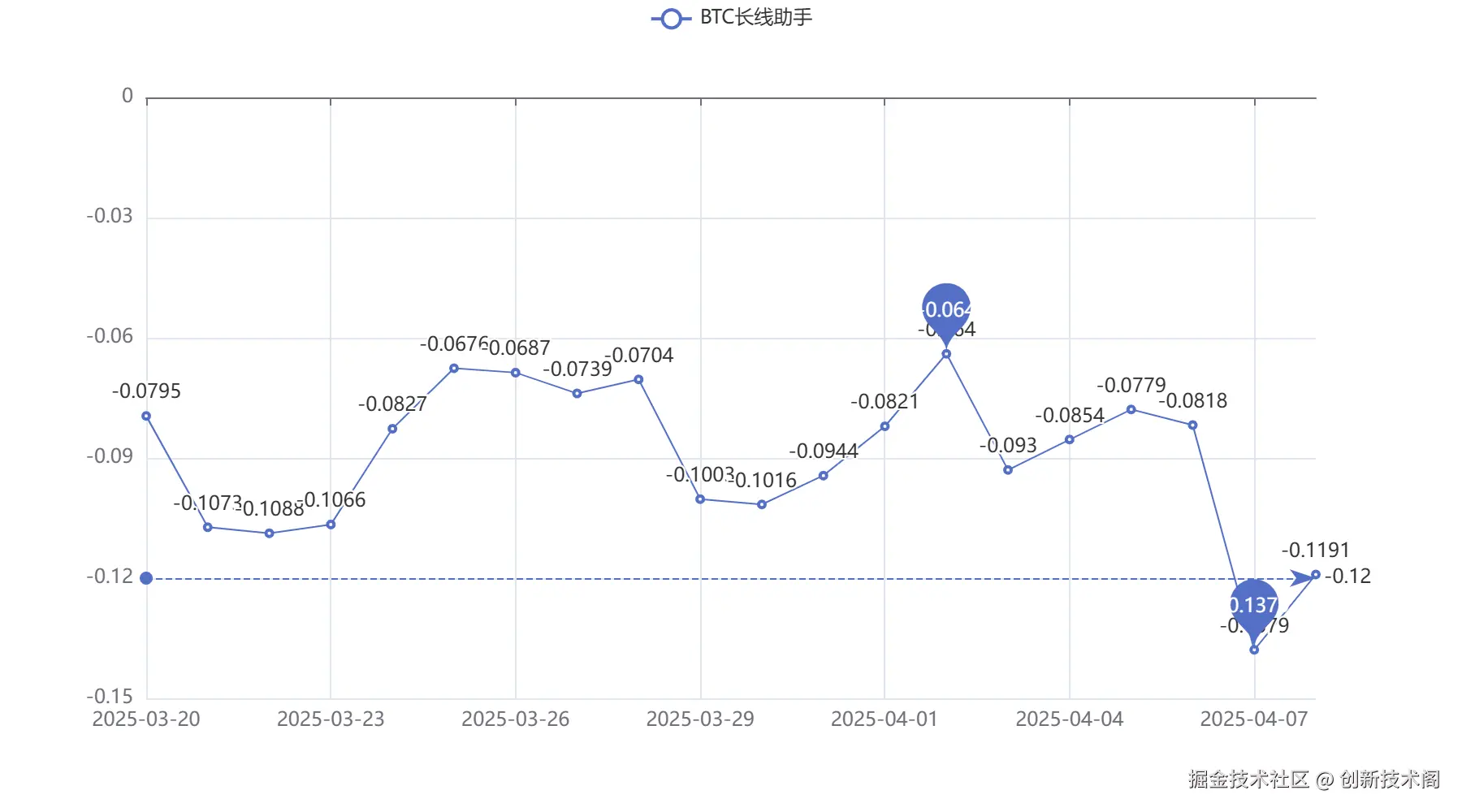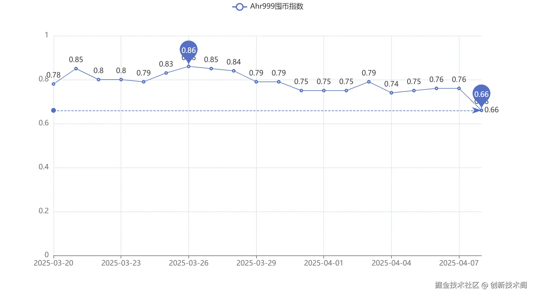 该指标由微博用户ahr999创建,辅助比特币定投用户结合择机策略做出投资决策。该指标隐含了比特币短期定投的收益率及比特币价格与预期估值的偏离度。