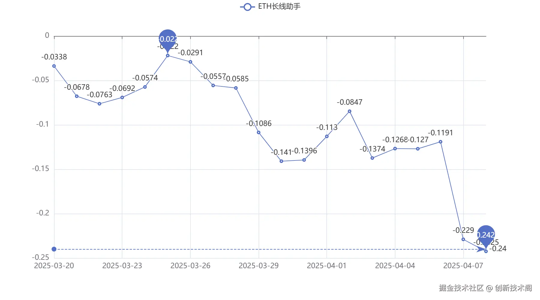 - 后续:价格若在 2025/04/09 08:00:00 高于 2050.20 USDT,长线助手预测出现上涨趋势,可考虑买入。