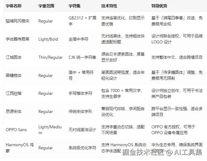 - 合规保障:字体来源清晰,包含改造字体(基于开源字体调整)、企业官方字体(OPPO Sans/HarmonyOS)、设计师独立授权字体,从源头避免版权纠纷