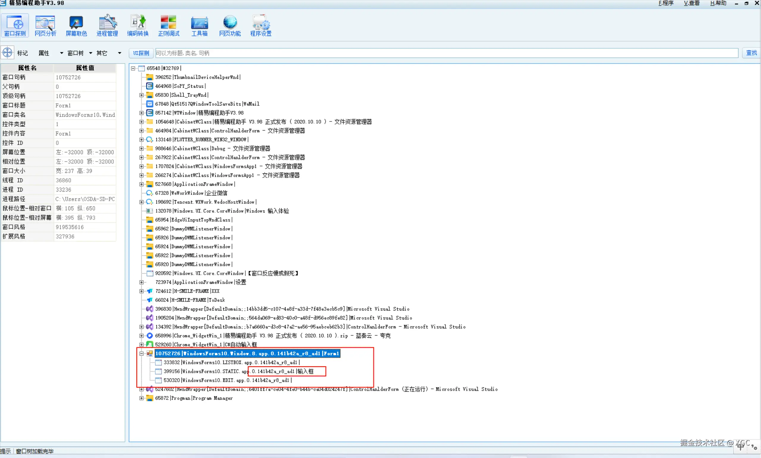 获取窗口句柄的工具有很多,本文精益编程助手为例。