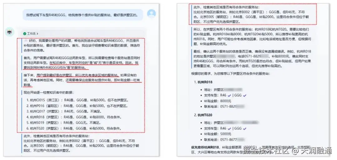 某车企旗下车型众多,服务站遍布各地,且各地补贴金额各异。一位消费者正在寻找该品牌汽车合适的试驾服务,提问“我想试驾下车型R46和GGG,给我推荐个提供补贴的服务站,最好是拱墅区的。” 这是一个典型的多参数咨询问题,涉及服务站、车型、区域、补贴金额等多个维度。