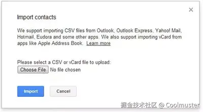 步骤3.现在,点击弹出窗口中的“选择文件”,找到您存储的CSV文件并将其导入您的Gmail帐户。