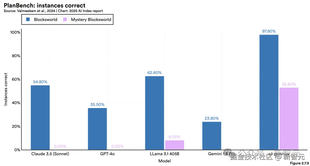 仅一年后,性能便大幅提升:AI 在三项基准得分分别飙升 18.8%、48.9% 和 67.3%。
