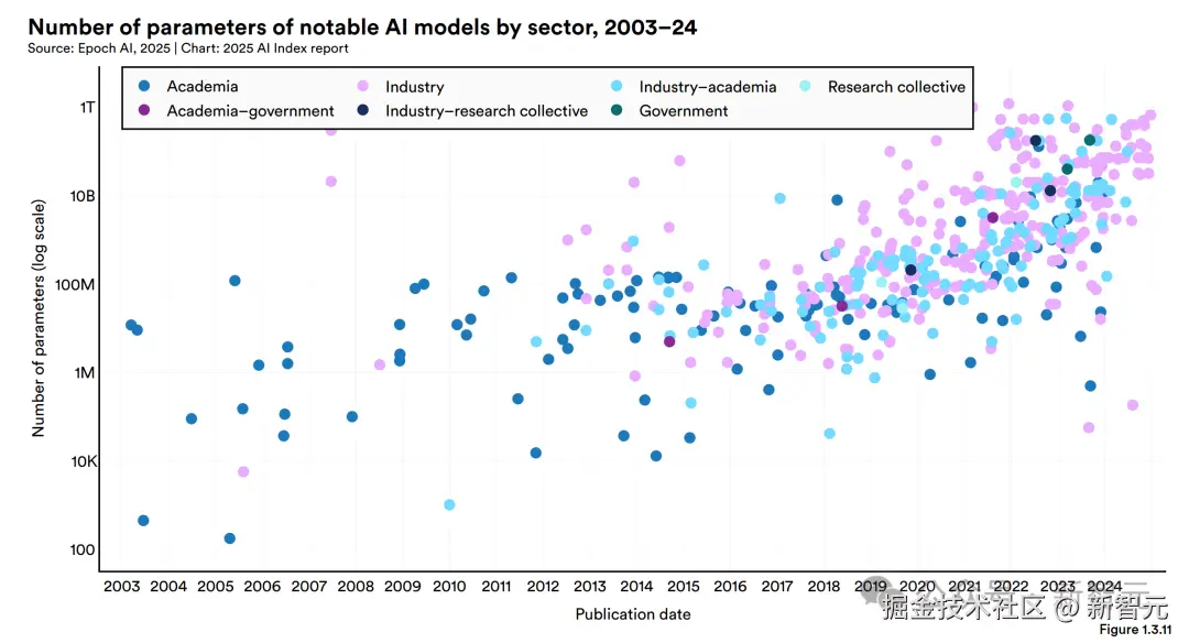 2024 年,近 90% 的重要模型源自企业,学术界则保持基础研究优势。