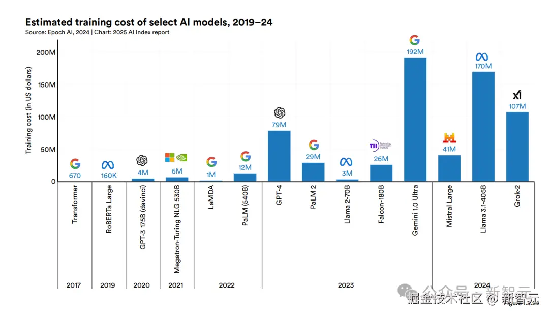 虽然很少有 AI 公司披露具体的训练成本,但这个数字普遍已达到数百位美元。