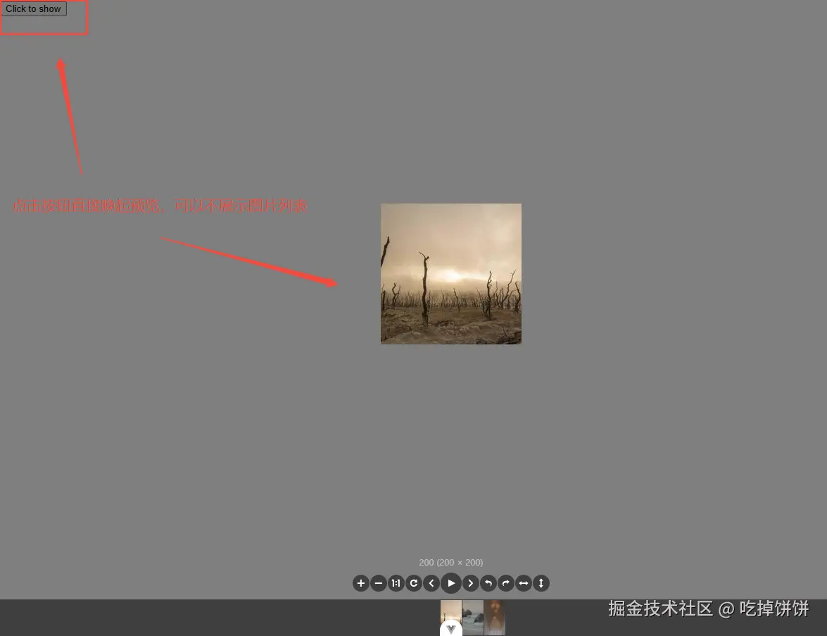 这种形式可以不用展示出图片列表,例如下图,可以点击按钮唤起预览。