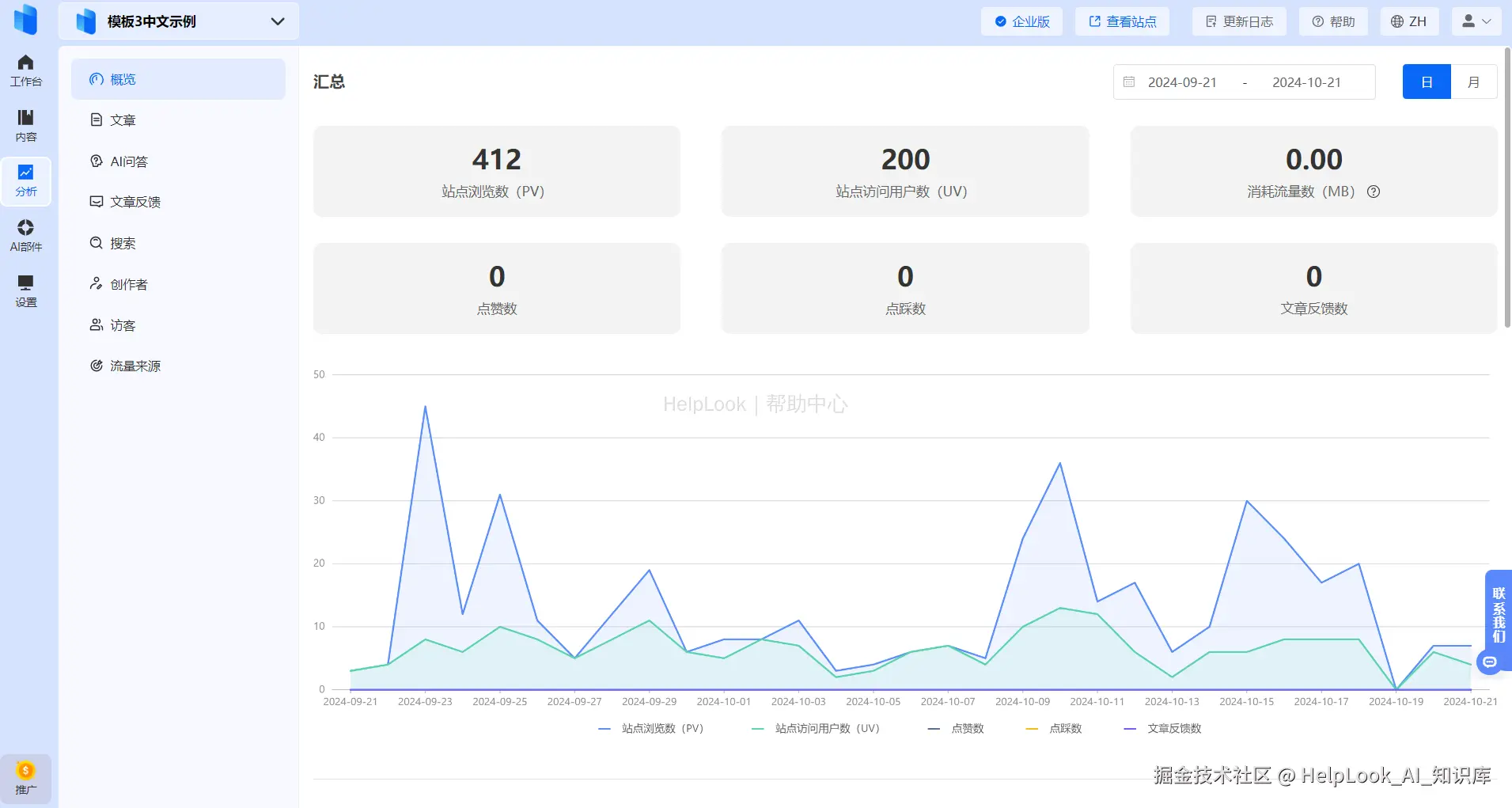 数据驱动运营:企业可以结合 HelpLook 的数据分析功能,识别冷门内容并持续优化,推动知识更新。