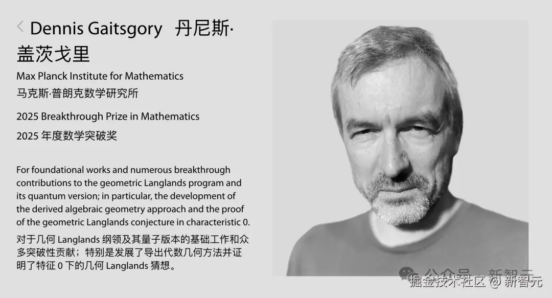Dennis Gaitsgory,来自德国波恩的 Max Planck 数学研究所,因其在几何 Langlands program 方面的诸多突破性贡献,斩获了极具声望的突破奖(Breakthrough Prize),奖金高达 300 万美元。