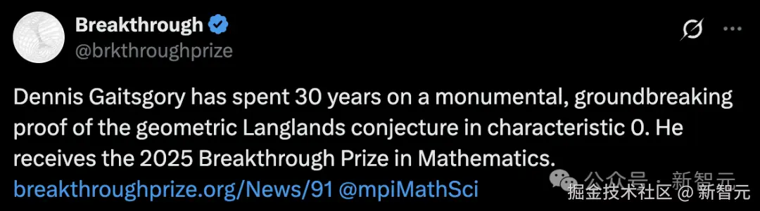 突破奖官方给予了高度认可——他耗尽 30 年完成了一项具有里程碑意义的突破性证明,解决了特征 0 下的「几何朗兰兹猜想」。