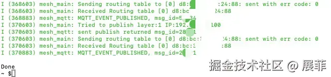 整个 mesh 网络的根节点会启用一个 DHCP 服务,给每个子节点分发一个 IP。这样一来,不只是节点之间能互相识别,连 MQTT 这类基于 IP 的通信也能跑起来。