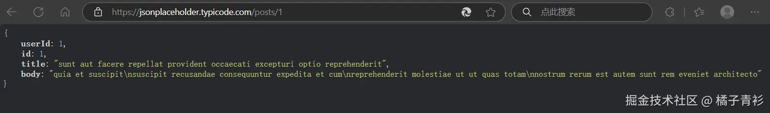 jsonplaceholder.typicode.com/posts/1 的内容如下: