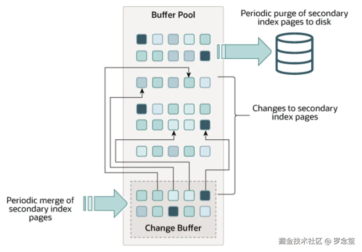 - 当一个二级索引的记录被更新或删除时,这些更改不会立即被写回到磁盘上,而是先被暂存到 Change Buffer 中