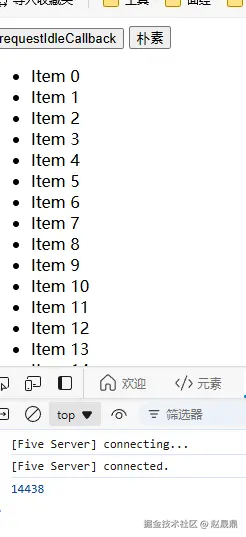 以频繁对一个列表中插入十万个列表项为例,我们分别实现 requestIdleCallback 版本代码【 test1 】和无优化版本代码【test2】来进行比较