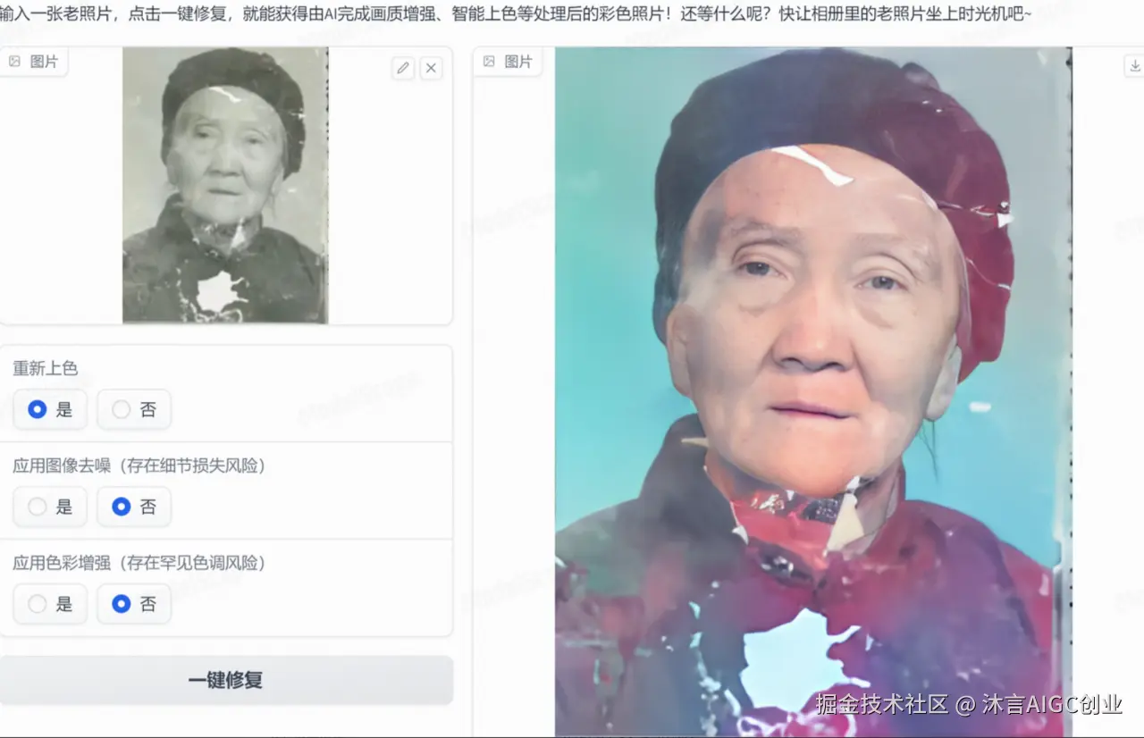 这一步不是必须的,如果老旧照片是黑白的,可以考虑使用如下工具对其上色 www.modelscope.cn/studios/iic…