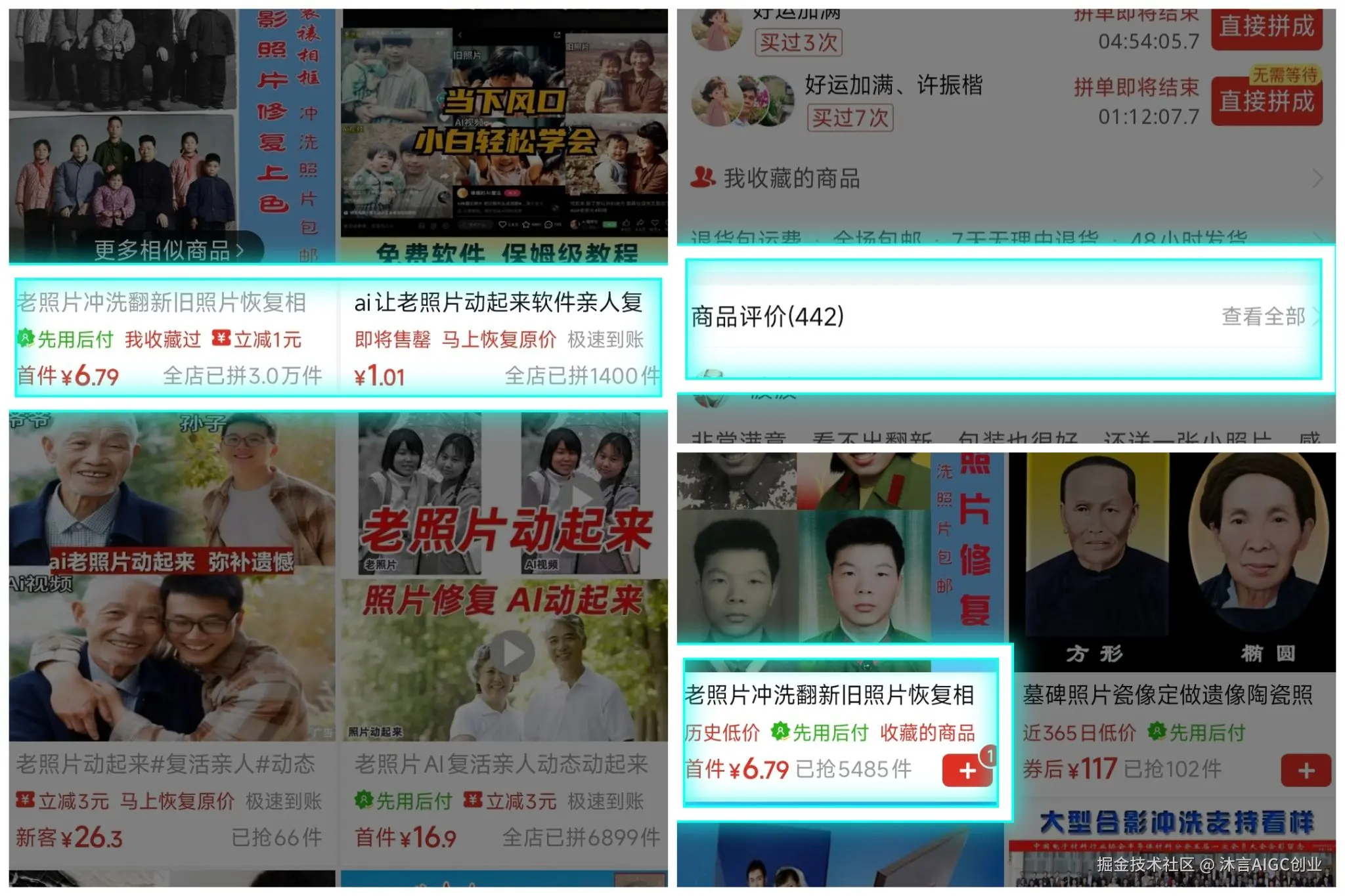 另外,这个店铺主要是老旧照片修复、上色,没有复活,如果是利用AI技术做照片复活单价应该会高一些。