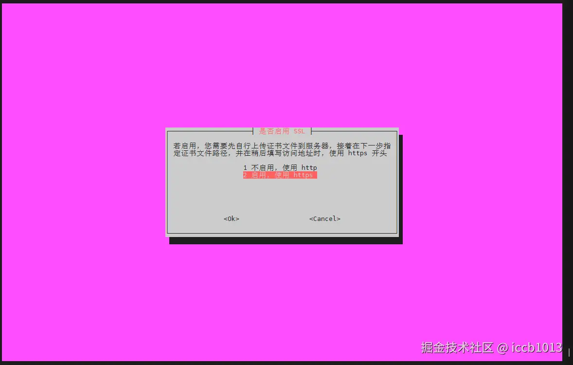 选择是否启用 https ,若选则启用,则您需要先将证书文件上传至服务器,并在接下来的步骤中输入证书文件路径: