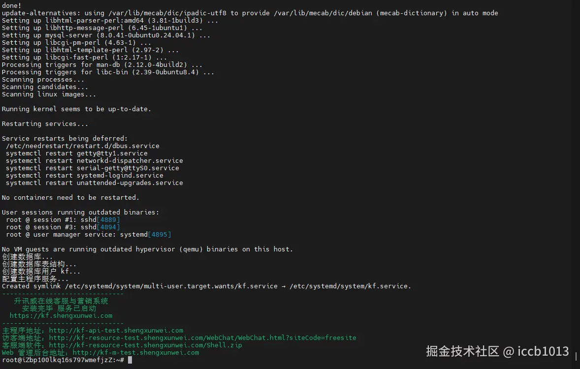 完成以上输入后,稍等片刻即可完成系统部署。请留意部署完毕之后的提示信息。
