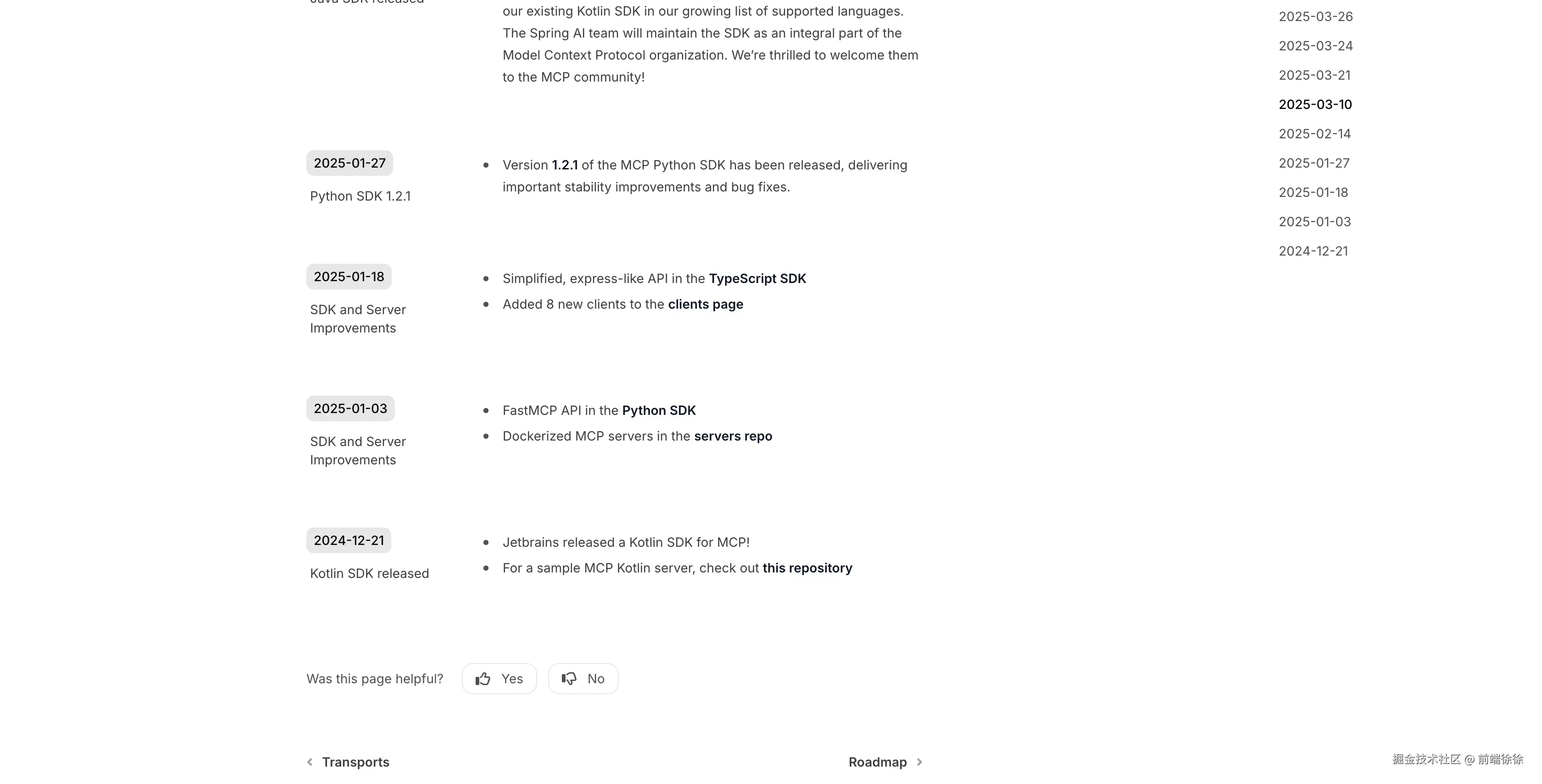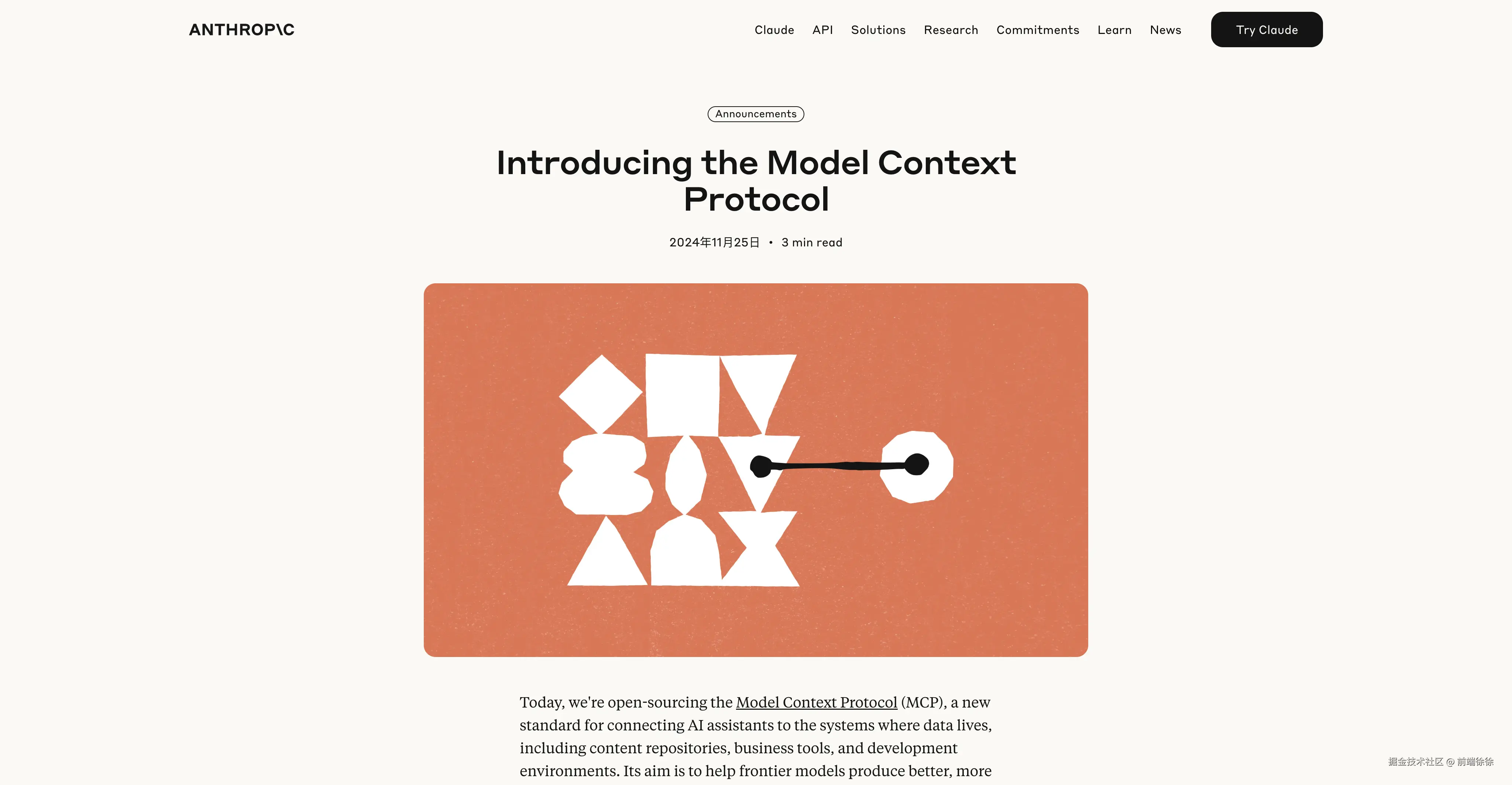 2024 年 11 月 25 日 Claude 官方宣布了 MCP 开源。但是看 SDK 的发布是在 2024 年 12 月 21 日。具体见下图。